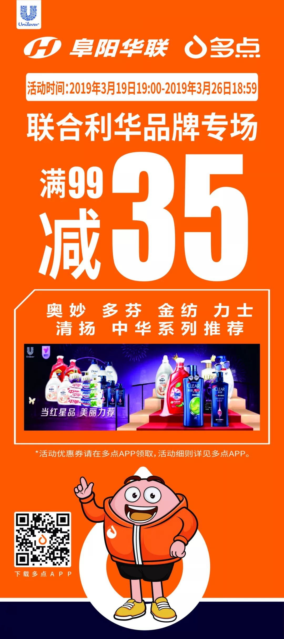 【阜陽華聯(lián)】聯(lián)合利華品牌獨(dú)家活動,專場滿99減35
