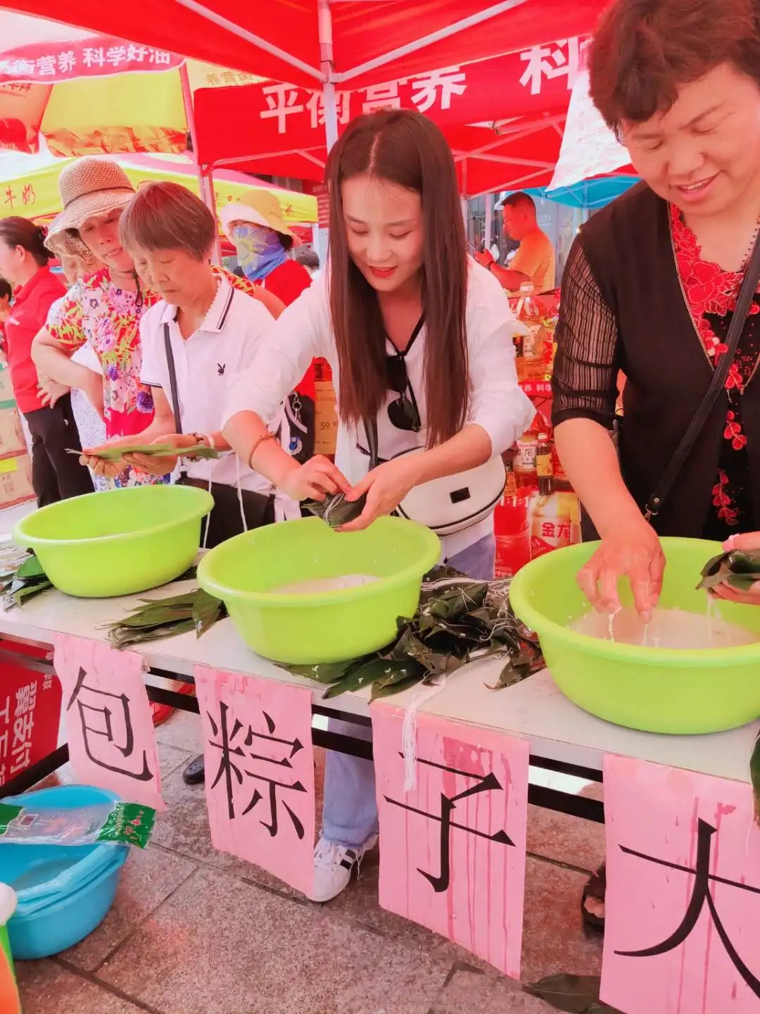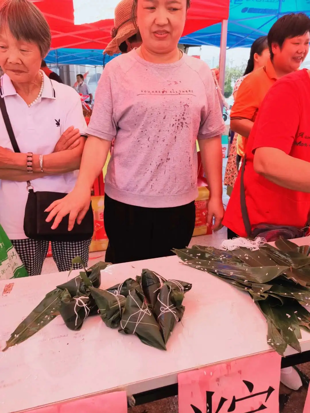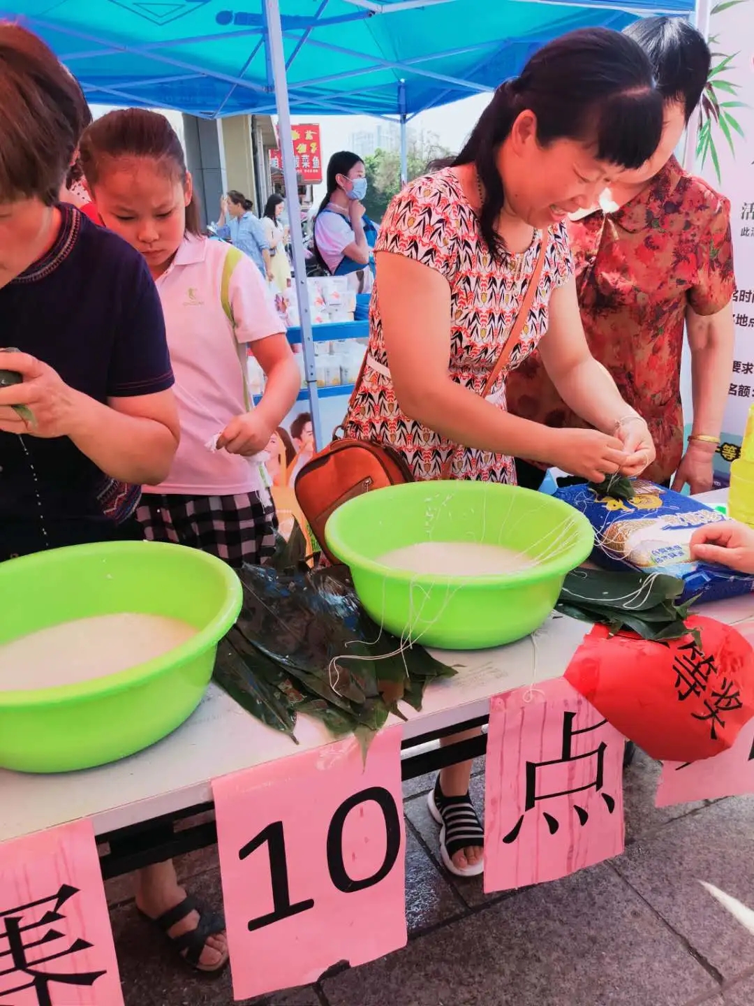 包粽子大賽現(xiàn)場,選手們麻利的動作,嫻熟的手法吸引了許多顧客的圍觀