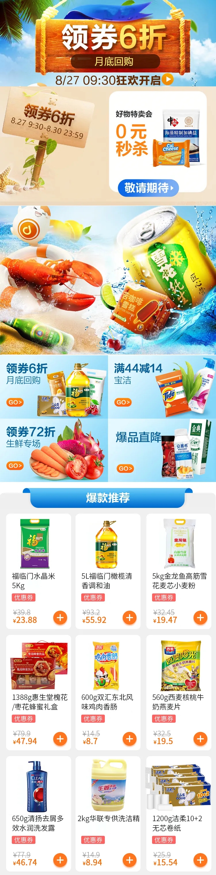 【七夕過后,月末回血福利】阜陽華聯(lián)多點線上活動,領(lǐng)券6折,秒殺直降!想你所想,給你所需?。?/h1>