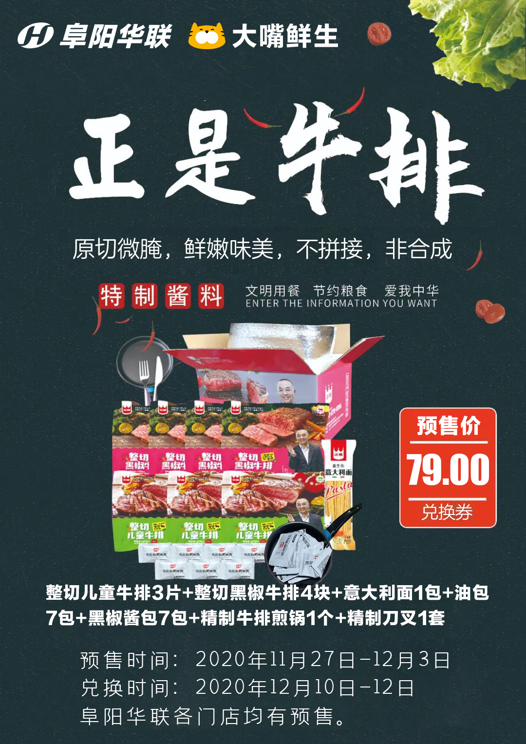 【內(nèi)附視頻】超劃算!阜陽華聯(lián)“正是原肉整切牛排套餐”來襲,79元預售還送鍋,速來搶購!