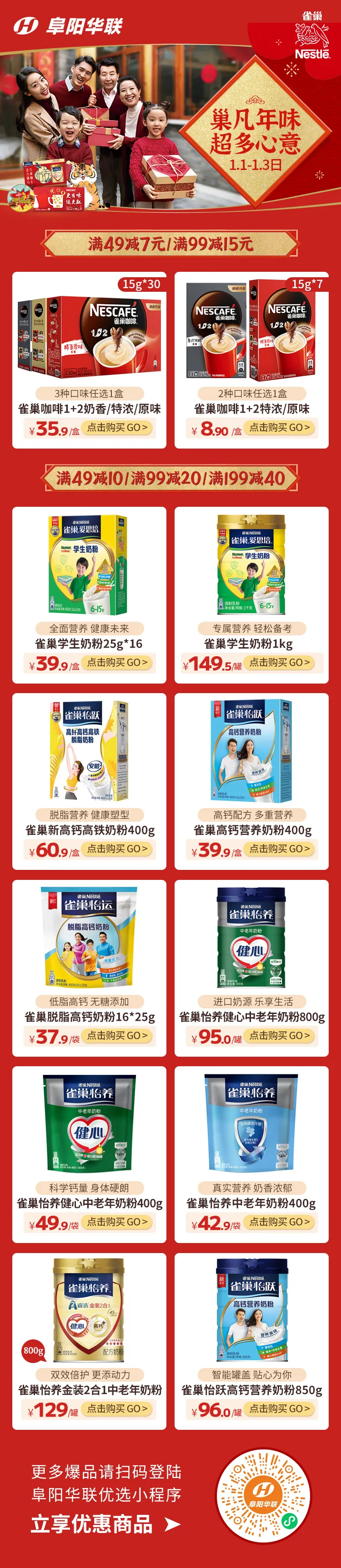 “巢凡年味·超多心意” | 阜陽華聯(lián)優(yōu)選·雀巢品牌滿減優(yōu)惠!