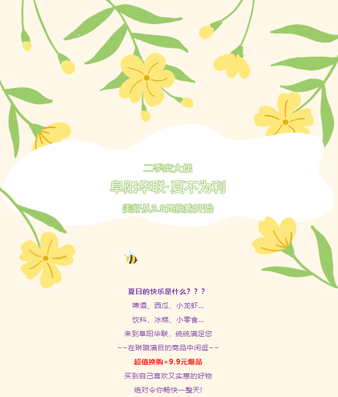 3.9元超值換購(gòu)!阜陽(yáng)華聯(lián)二季度大促清涼開啟!